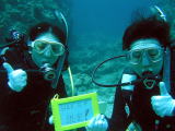 | 進め方と内容は? | ●ダイビングの手順をご説明し、しっかりと練習したあと水中世界へご案内します。 ●スタッフ1名につきお客様2名までの少人数制なので、安心して潜れサカナと じっくり遊んでいただけます。 ●潜水時間はお客様次第!十分楽しみ、そしていい思い出を! |