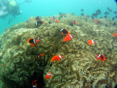 | ポイント名 【クマノミ城】 基地建設が着工すれば、この場所はヤード(資材置き場)として利用されることになり ここに棲むクマノミやハード&ソフトのサンゴは当然全て生き埋めになり、 また潮の流れが変わるなどして結果アオサンゴ群落にまで 影響が出てくることも考えられています。 基地建設絶対ダメです!断固反対です!! ★クマノミ城の様子は『YouTube』でどうぞ。 |