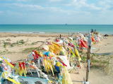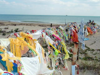 (右)通称『じゅごんの見える丘』。 かつては、基地キャンプ・シュワブに 面した浅海域に海草を食べに来ていた というジュゴン。 しかし今は静かで落ち着いた場所を求め この海域を餌場としているそうです。 |
