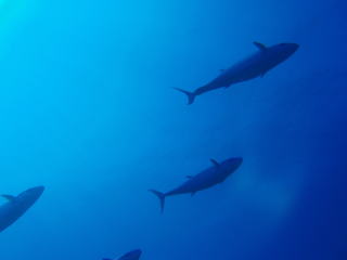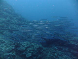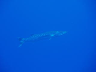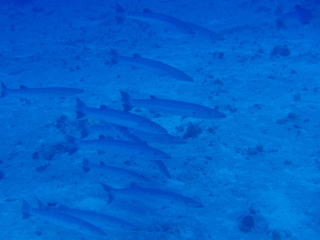| (右)『ブラックフィンバラクーダ』 この時は群れで水面近くをゆっくり遊泳。 この様子はこちら『YouTube』で。 |