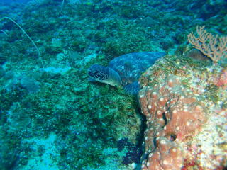 (右)ルカンは『ウミガメ』や『サメ』が多い。 ホワイトチップにはたくさん出会える事も |
