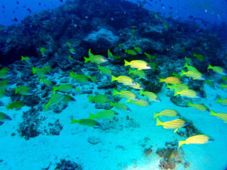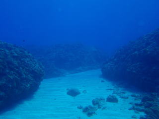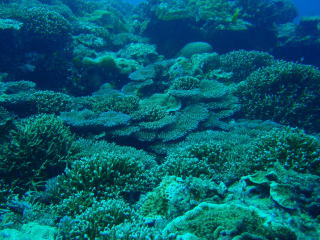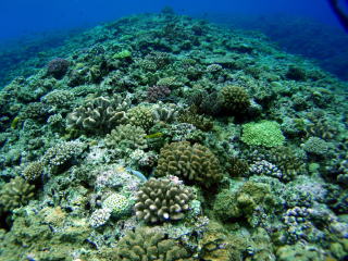 | (上)ルカンの北側のポイント。 北側は比較的抜けてることが多い。 サンゴが群生している根が点在し底は砂地。 浅瀬に行けばラクダの背のコブのような 岩があり地形も楽しめる。 |