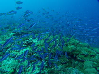 「えッ!ルカン礁ってどこ??」 沖縄でよく潜られている方でも、このポイントを潜っていない方って結構います。 チービシをご存じの方は多いと思いますが、チービシから真南の所にルカン礁があります。 沖縄本島とケラマの間にあるサンゴ礁が隆起してできたドーナツ型の環礁です。 ルカン礁の魅力は「透明度」と「ダイナミックさ」と「魚影」。 回遊魚がもう少し廻ってきてくれれば・・・な〜んて言うのは贅沢な悩みですね。 でも、とんでもない大物に出会えそうなそんな雰囲気のあるポイントなのは確か。 実際に、あんなヤツやこんなヤツも出てるんです! 沖縄本島南部にある【ルカン礁】・・・ この夏潜ってみませんか!? |